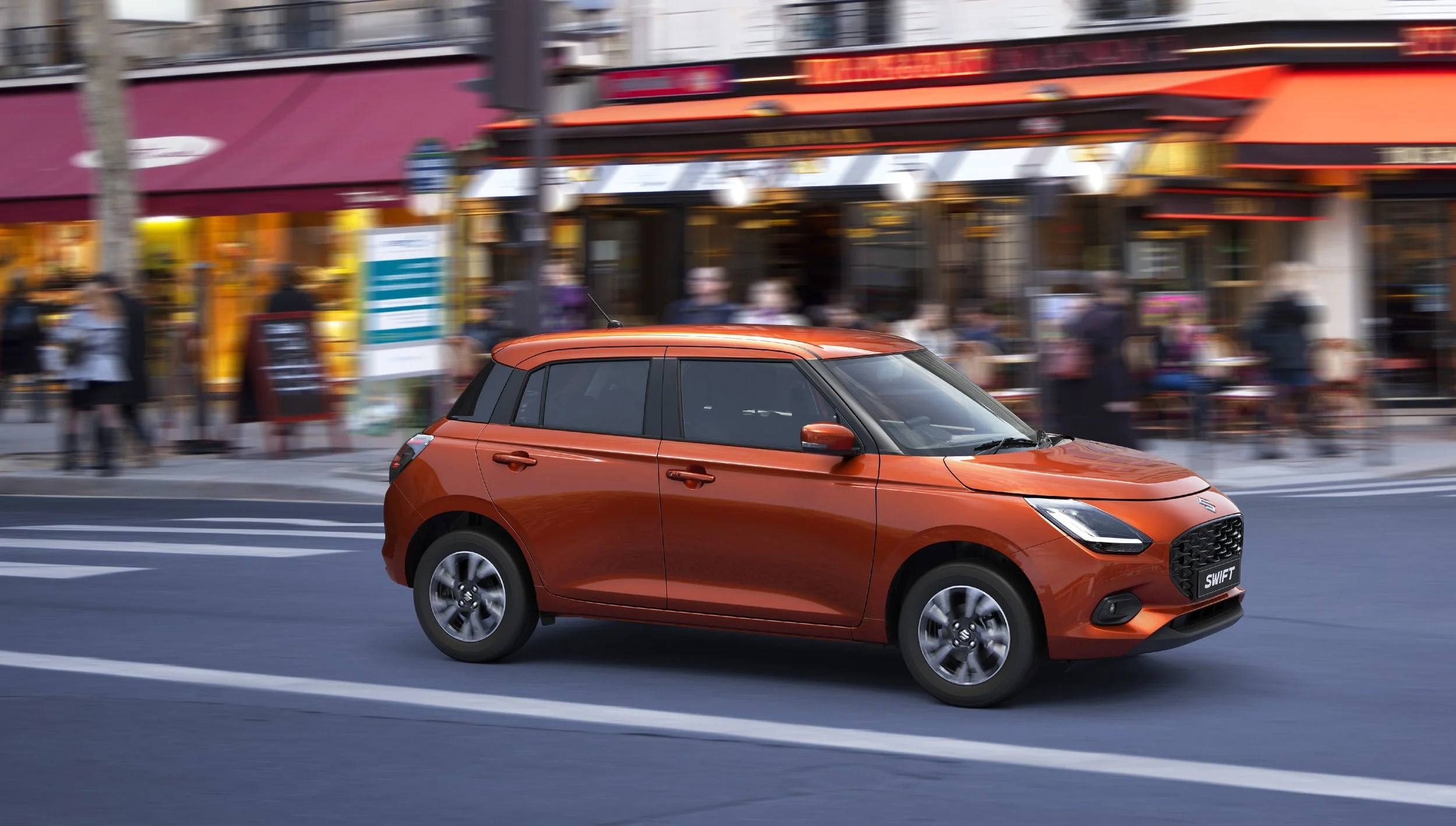 On the street, the Swift’s sense of style makes it really stand out. From the sleek contoured lines of its profile to its wide rear bumper, it has a sporty and athletic look that reflects the vehicle’s quick, agile handling. It also has a unique design signature at night, with new inner-lensed light rod elements in the rear combination lamps and front position lamps that take on a distinctive three-dimensional appearance when illuminated.